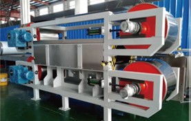 The press is similar in structure to the continuous double steel belt press for wood-based panels but solves the shortcomings of traditional intermittent and other types of presses. It applies pressure and heat to the laminated base material via the steel belt under continuous operation and then cooling and forming. The system can be widely applied to the hot pressing, cold pressing and compounding process of a variety of substrates, offering efficient processing, a reduction in energy consumption and improved production efficiency.